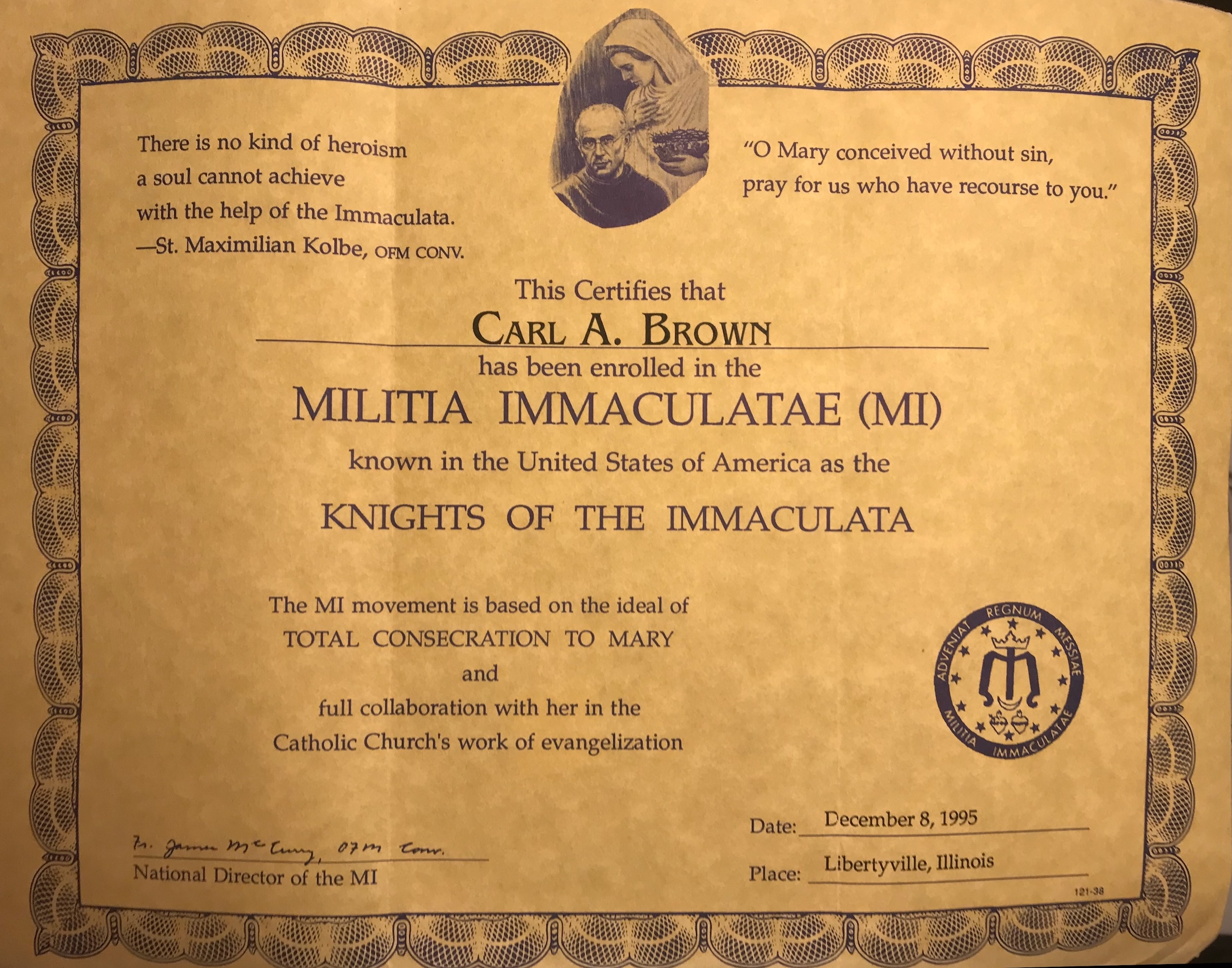 I still have the certificate from the consecration. Can't believe it's been thirty years!
